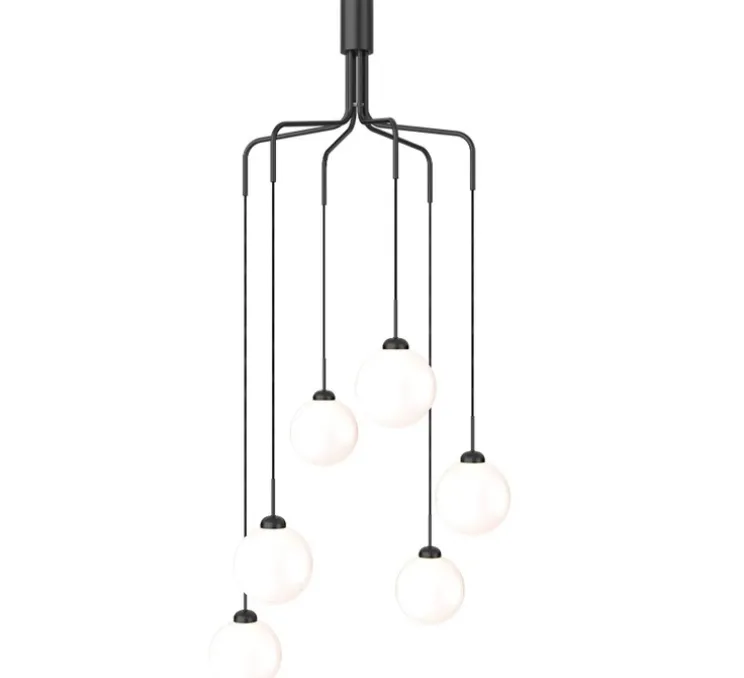 Il est important de noter que le lustre Apiales Cluster 6 nécessite une certaine hauteur au plafond pour être installé de manière optimale, en raison de sa taille imposante. Il est conçu pour créer un point focal dans la pièce et ajouter une dimension visuelle significative à votre espace.