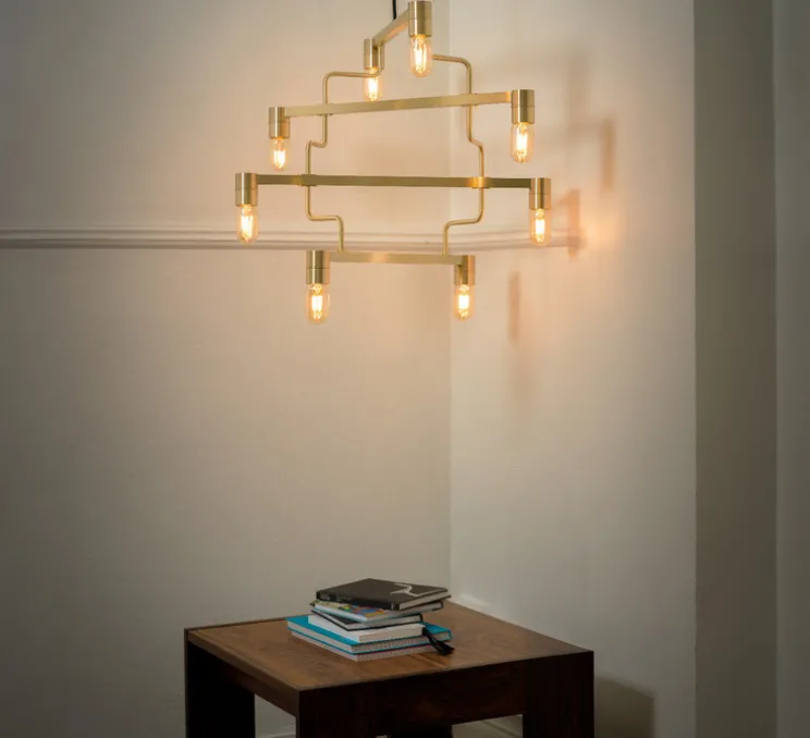 Le chandelier Kennedy, dessiné par Niclas Hoflin pour la marque Rubn, appartient à la collection Kennedy lancée en 2025.