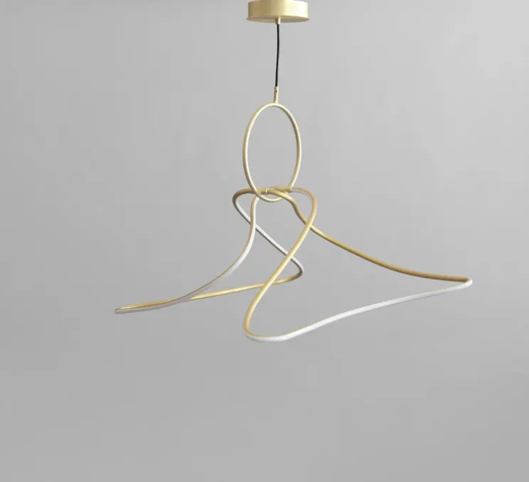 Réalisé à partir de tubes métalliques plaqués laiton, ce luminaire est équipé de LED intégrées. Sa forme tubulaire et organique, combinée à une lueur douce de 2400 Kelvin, crée une ambiance accueillante.