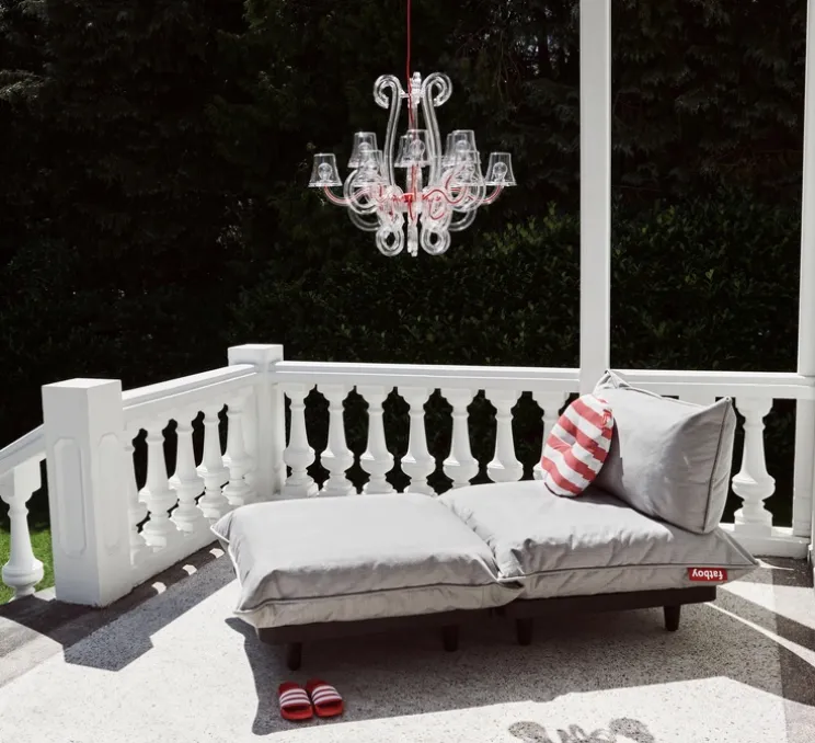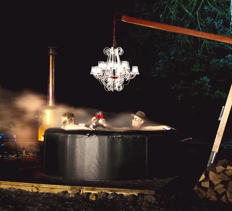 Ce lustre transparent ne vous cache rien, en intérieur ou en extérieur il vous éclaire. Une note glam-rock doublée d’une touche d’élégance façon Louis XV, c’est l’alchimie créée par les designers DeMakersVan pour ce chandelier urbain au look Fatboy si distinctif. Sa lumière chaude (2200K) et son nouveau kit plafond vous permettront d’instaurer une fabuleuse ambiance quel que soit votre intérieur. Sinon il vous suffit de suspendre le Rockcoco par son filin métallique ou bon vous semble pour obtenir un véritable tape-àl’œil qui plébiscitera l’attention de vos invités. « Waterproof » et à la pointe de la technologie (LED), le Rockcoco est aussi extrêmement ergonomique. Pas besoin de vous lever pour l’allumer une fois la nuit tombée, puisqu’ il est accompagné d’une télécommande surdimensionnée permettant d’ajuster le variateur pour obtenir l’atmosphère qui vous convient.