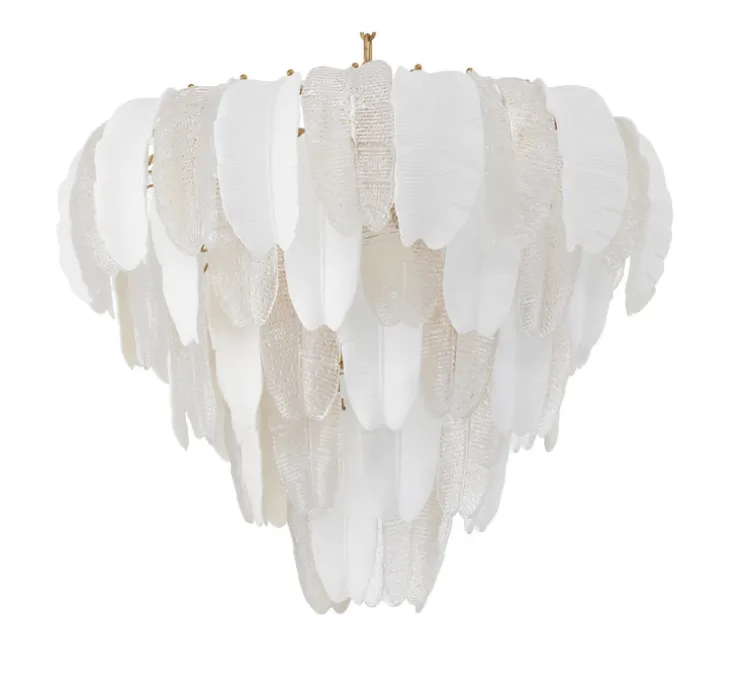 Le lustre Saint Lucia marie avec élégance deux matériaux raffinés : le verre texturé et la céramique blanche. Ce luminaire suspendu incarne un équilibre parfait entre art et fonctionnalité. Il apporte une touche de luxe discret et transforme tout espace intérieur, qu’il soit moderne ou de style Art Déco.