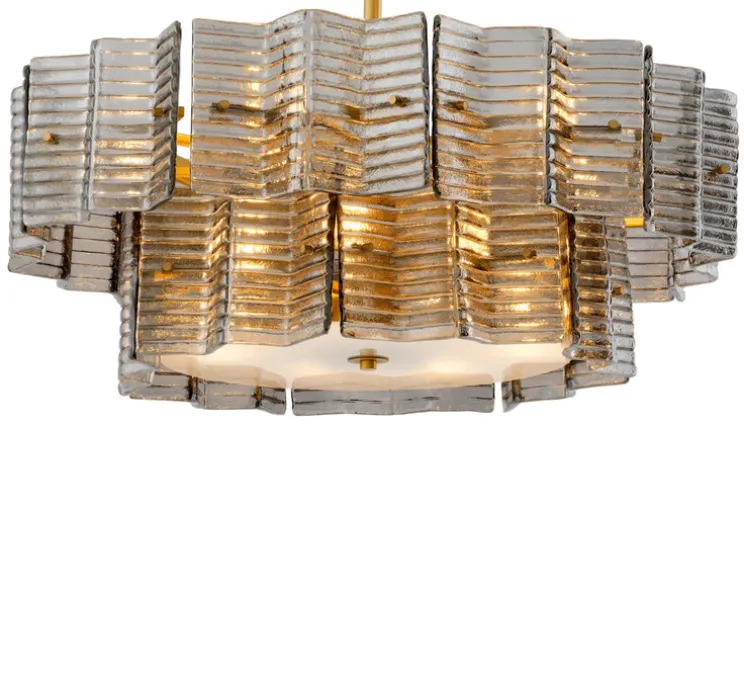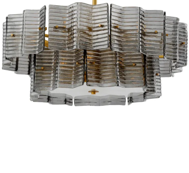 Avec son design élégant et raffiné, ce lustre alliant verre fumé, verre givré et laiton antique apportera une touche de sophistication à votre décoration.