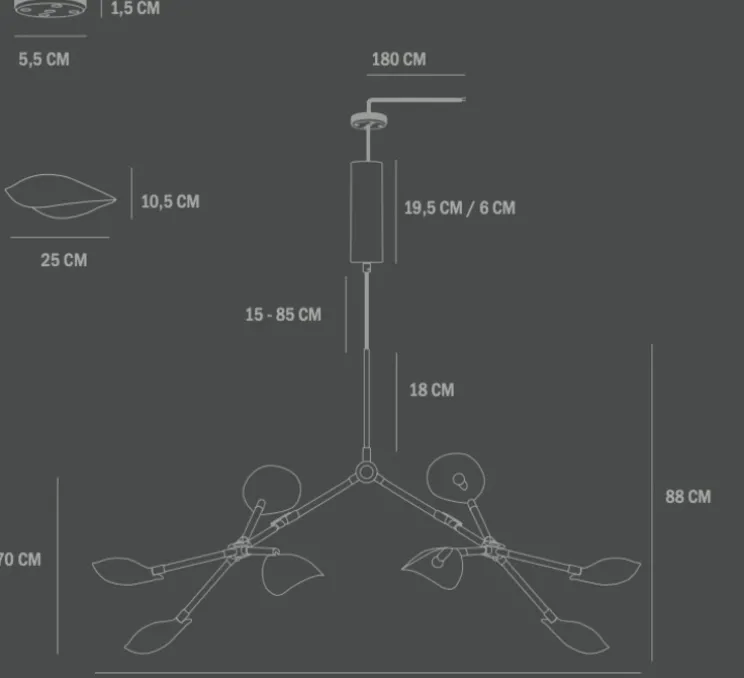 Ce lustre s’intègre parfaitement dans une salle à manger, un salon ou encore une chambre. Stingray est équipé d’un câble noir de 5 mètres de longueur, offrant une grande flexibilité d’installation.