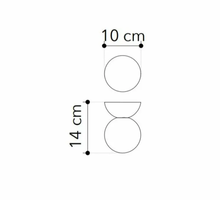Les deux appliques et plafonniers mesurent 10 cm de diamètre et 14 cm de hauteur.