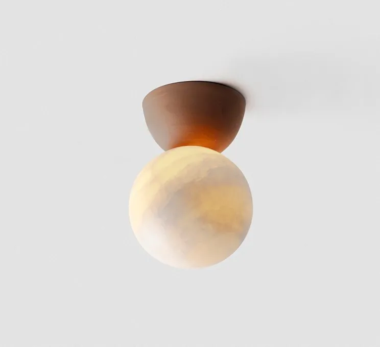Son abat-jour en albâtre diffuse une lumière douce et homogène à 360°, créant une ambiance chaleureuse et apaisante. Chaque pièce, avec ses nuances naturelles, est unique et raconte une histoire à travers la richesse de sa matière. La base en céramique terracotta, façonnée à la main, apporte une touche de caractère et de profondeur au design. Idéal pour les espaces minimalistes et contemporains, ce plafonnier s’intègre avec élégance dans les salons, chambres ou couloirs, rehaussant chaque environnement d’une lueur subtile et raffinée.