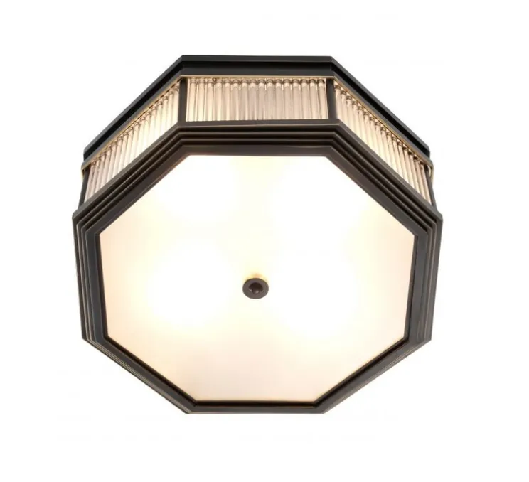 Inspiré du design contemporain Art déco, le plafonnier Bagatelle séduit par son charme et sa délicatesse. Ce plafonnier octogonale est fait en verre transparent dépoli, et il dispose d’une finition en bronze brillante.