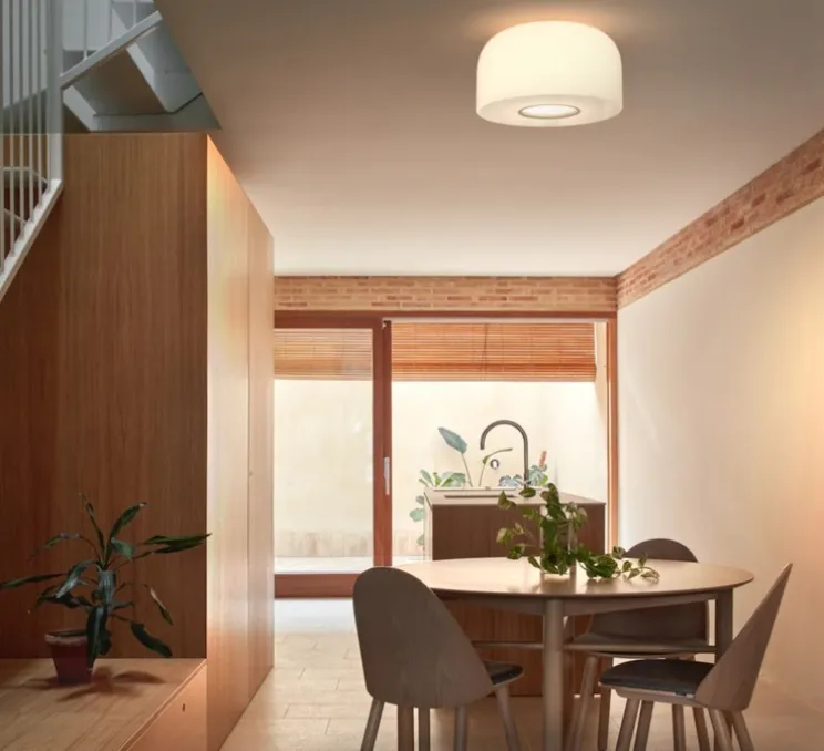 Avec le plafonnier Bellhop Glass, les designers mêlent élégance et fonctionnalité. Elle est conçue à partir d’un abat-jour en verre soufflé opalin disposant d’une ouverture inférieure entourée d’un anneau en métal. Il diffuse une lumière non éblouissante qui crée une atmosphère chaleureuse tout en projetant un cône de lumière précis et homogène par le bas. Parfait équilibre entre design minimaliste et performance lumineuse, Bellhop Glass illumine chaque espace avec subtilité.