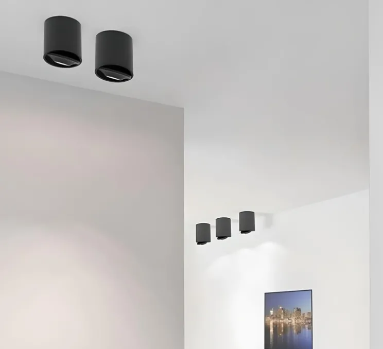 FlatLED T1 se présente sous la forme d‘un cylindre, incorporant un disque mobile dans son bout bas. Son système est pensé avec deux éléments : le premier inclut la LED et peut s’incliner à 55°, le second tourne à 360° et permet également de cacher le dissipateur thermique. Une lentille diffuse le faisceau lumineux à 37°. Avec sa technologie et sa puissance lumineuse, FlatLED T1 est parfait pour éclairer un espace vaste ou apporter de la clarté à un espace de travail.