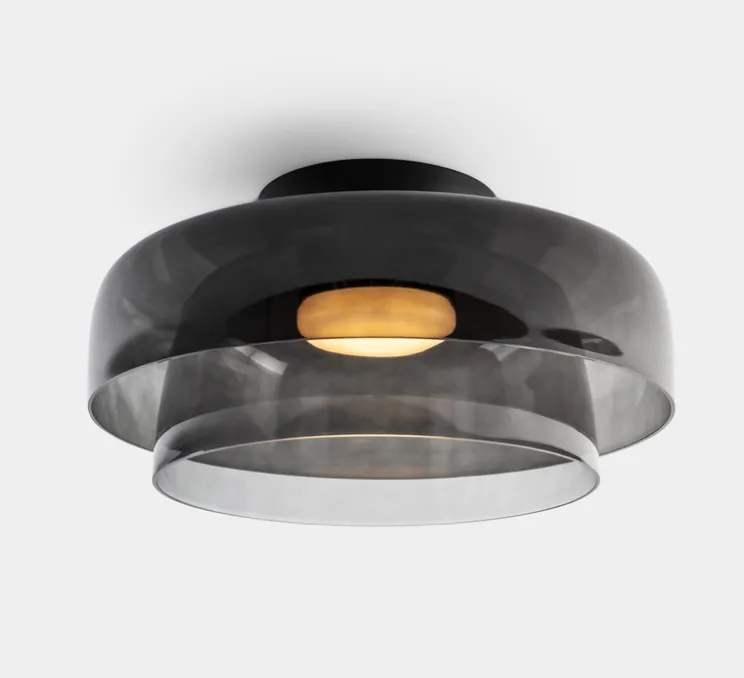Avec sa composition de deux abat-jour en verre finition fumé, Levels mesure 42 cm de diamètre et 22 cm de hauteur.