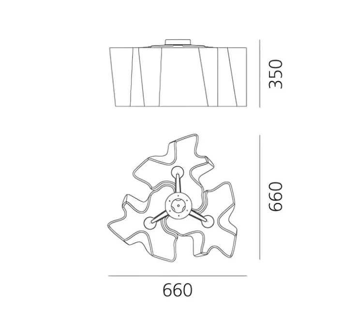 Il mesure 66 cm de diamètre et 35 cm de hauteur. La source lumineuse n’est pas incluse (3 x E27).