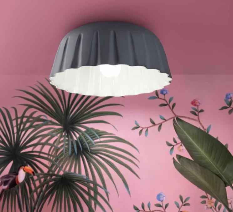 Le plafonnier Madame Gres S gris noir imaginé par Ferroluce est tout en finesse.