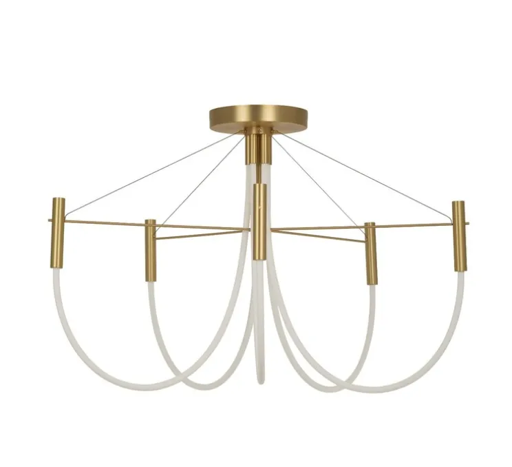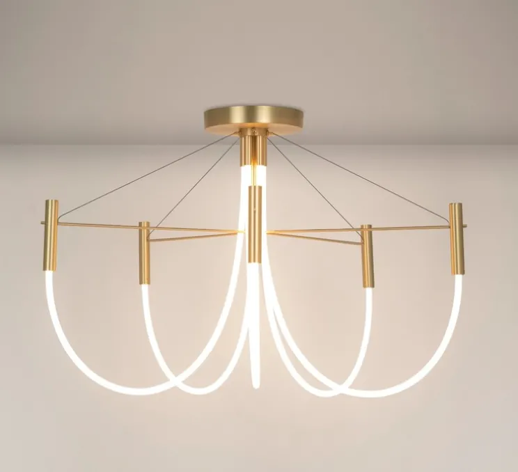 Ce plafonnier décoratif diffuse une lumière à 360°, grâce à une source LED intégrée de 2700K et 2850 lumens. Dimmable, il permet de moduler l’ambiance selon les besoins. Réalisé en laiton et silicone, il mesure Ø89 cm x H58 cm. Montage en saillie.