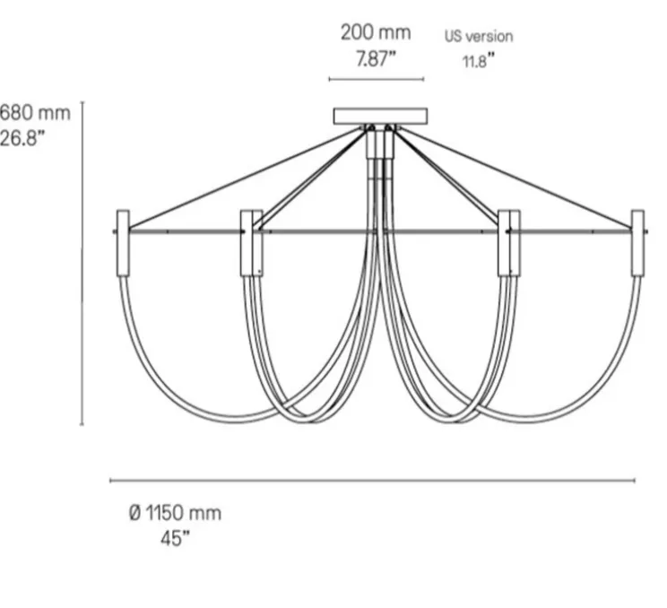 Ce plafonnier décoratif diffuse une lumière à 360°, grâce à une source LED intégrée de 2700K et 4800 lumens. Dimmable en coupure de phase, il permet de moduler l’ambiance selon les besoins. Réalisé en laiton et silicone, il mesure Ø115 cm x H68 cm. Montage en saillie.