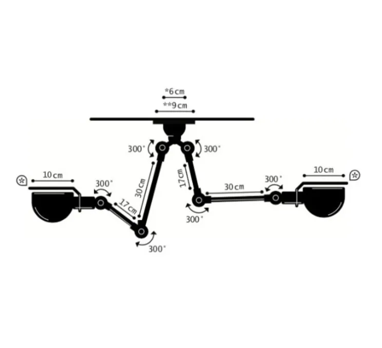 Ce plafonnier est disponible en différentes couleurs. Chaque bras est composé de tiges mesurant respectivement 30cm et 17cm.