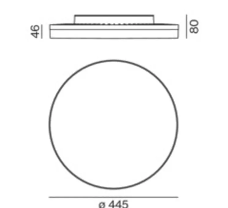 Il présente une silhouette circulaire de 44,5 cm de diamètre, réalisée en aluminium injecté et finition blanc opalin. Sa source lumineuse est incluse et diffuse 3000K.