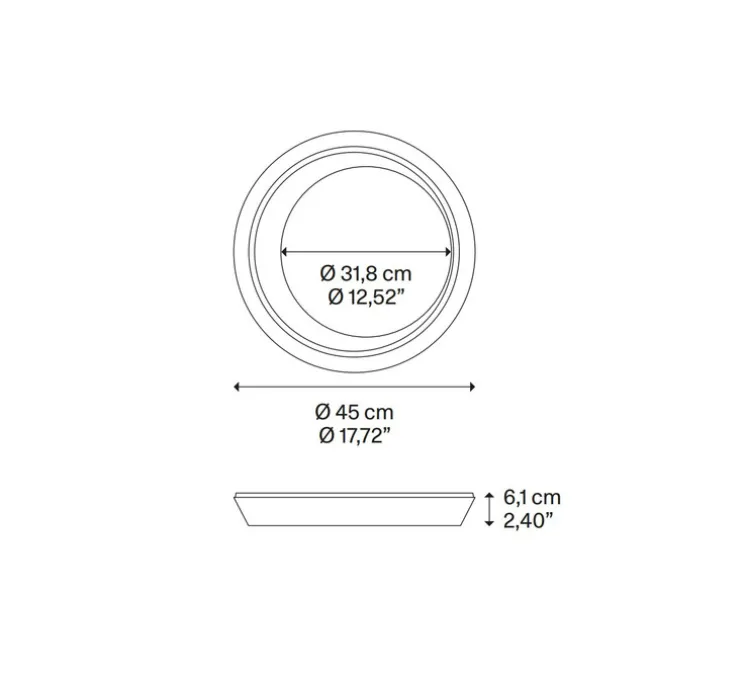 Le plafonnier Tidal 45 intègre une source LED de 5040 lumens avec une température de couleur de 2700K, idéale pour une ambiance chaleureuse. Il offre un éclairage à la fois direct et indirect, avec une variation d’intensité grâce à sa fonction dimmable. Conçu en métal de haute qualité, il mesure 45 cm de diamètre et 6,1 cm de hauteur. Il garantit une restitution des couleurs précise grâce à un IRC supérieur à 90.