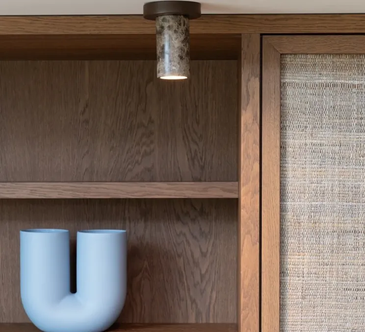 Conçu en marbre marron, il se distingue par son aspect naturel et intemporel. Sa présence discrète habille le plafond tout en apportant une note décorative. Grâce à sa teinte sobre, il s’intègre facilement aussi bien dans un espace de vie que dans une entrée.