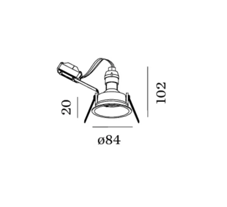 Sa hauteur et son diamètre mesurent respectivement 8,4cm et 10.8cm. Nous préconisons une hauteur de 16cm pour le faux plafond afin d’installer confortablement le spot.