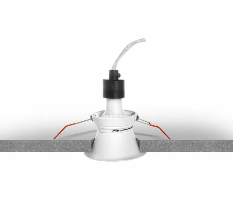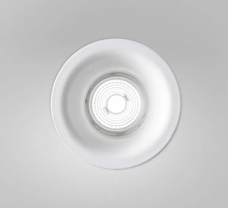 Un spot encastré en retrait aux belles courbures signé de la maison italienne Panzeri.