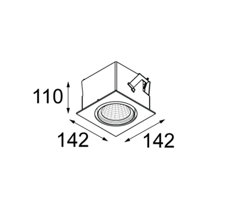 La source lumineuse est intégrée (1 x module LED, 2700K, 15°, CRI92, 350mA/11.7W/1220lm/UGR17, 500mA/17.2W/1655lm/UGR18 ou 700mA/25W/2174lm/UGR19, variable selon le transformateur utilisé).