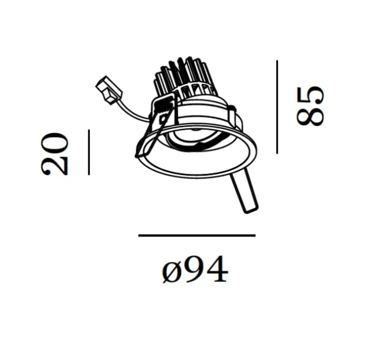 Sa hauteur et son diamètre mesurent respectivement 8,5cm et 9,4cm. Nous préconisons une hauteur de 16cm pour le faux plafond afin d’installer confortablement le spot.
