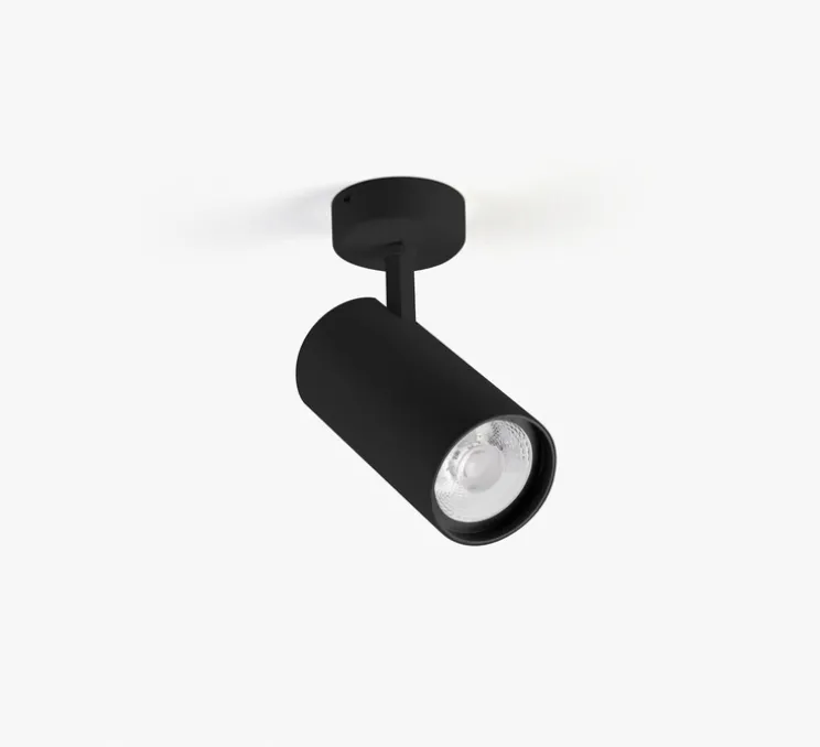 Voici le projecteur Fost Surface 38°, finition noire mat, de la collection architecturale de la célèbre maison espagnole Faro.
