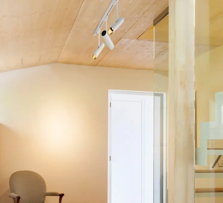 Ce spot blanc au style moderne possède une tête qui pivote à 90° du haut vers le bas. La rotation horizontale elle, est de 350°, ce qui rend ce luminaire très fonctionnel.