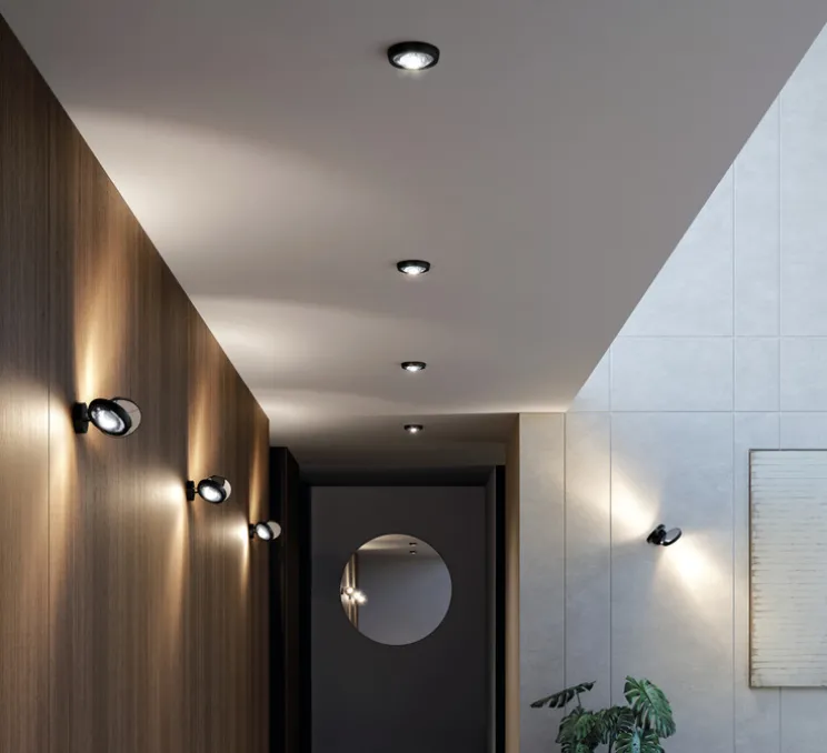 Avec son corps en métal et son design compact (Ø13,4 cm, hauteur de 4,2 cm), Nautilus s’intègre aussi bien dans une entrée que dans un séjour ou un couloir. Son coloris neutre noir mat permet de l’associer facilement à des matériaux bruts comme le béton, le bois ou l’acier, pour renforcer une ambiance industrielle ou minimaliste.