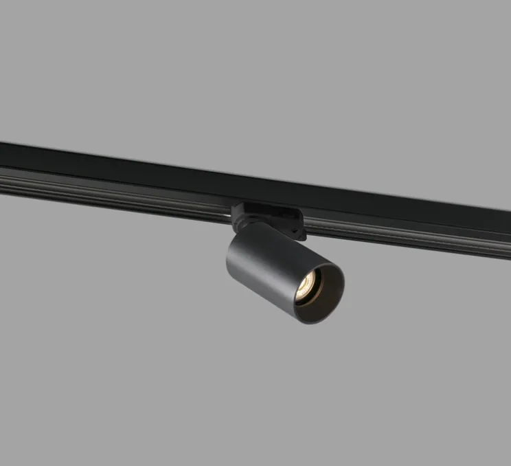 La maison espagnole Faro édite le projecteur pour rail Stan en finition noire.