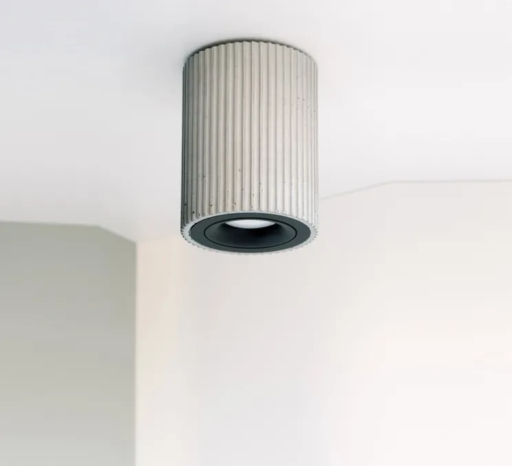 Le spot et plafonnier [S2] marque les esprits par son élégance et sa couleur minérale. Sa forme cylindrique et compacte lui donne un aspect moderne qui lui permet de s’adapter à tout type de pièces et décoration.