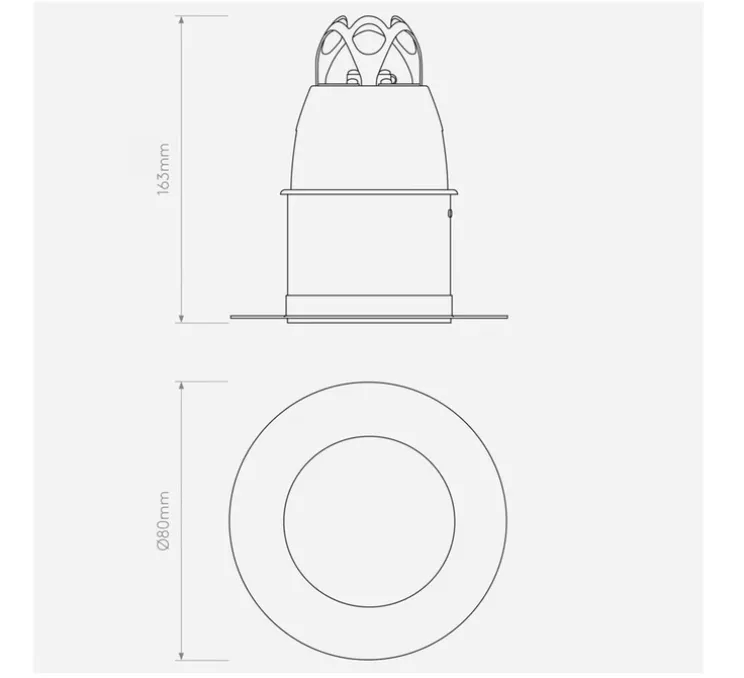 Le luminaire est encastrable, il est recommandé de creuser un trou de 9,8cm de diamètre et une profondeur de 16,3cm pour y placer le spot. L’ampoule LED n’est pas incluse, privilégiez une ampoule LED GU10 avec une puissance maximale de 6W.