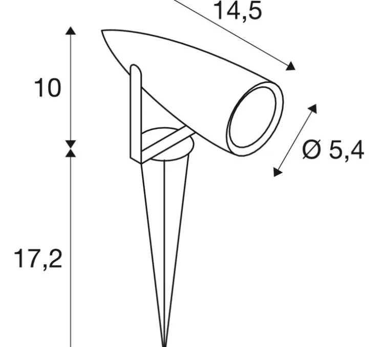 Les dimensions de la lampe sont de 14,5cm de hauteur et 5,4 de diamètre et le piquet mesure 17.2cm. La source de lumière est incluse.