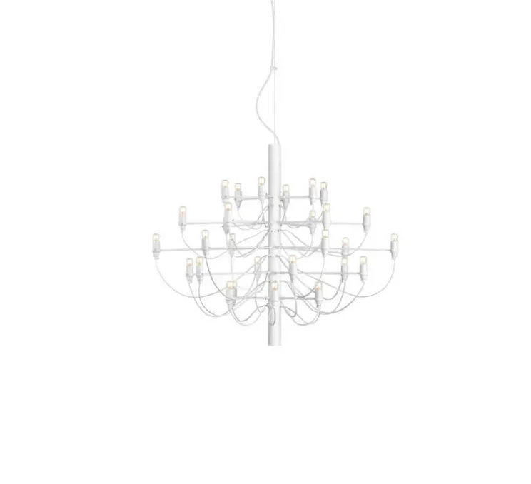 2097/30 est une suspension à lumière diffuse composée d’une structure centrale en forme de tube, de laquelle partent trente bras en acier, chacun accueillant une ampoule. 2097 a la silhouette d’un chandelier classique et une allure moderne. Raffiné et iconique, 2097 s’intègre dans tous les intérieurs, qu’ils soient privés ou publics, classiques ou modernes, que la suspension soit utilisée dans un salon, au-dessus d’une table ou dans une entrée.
