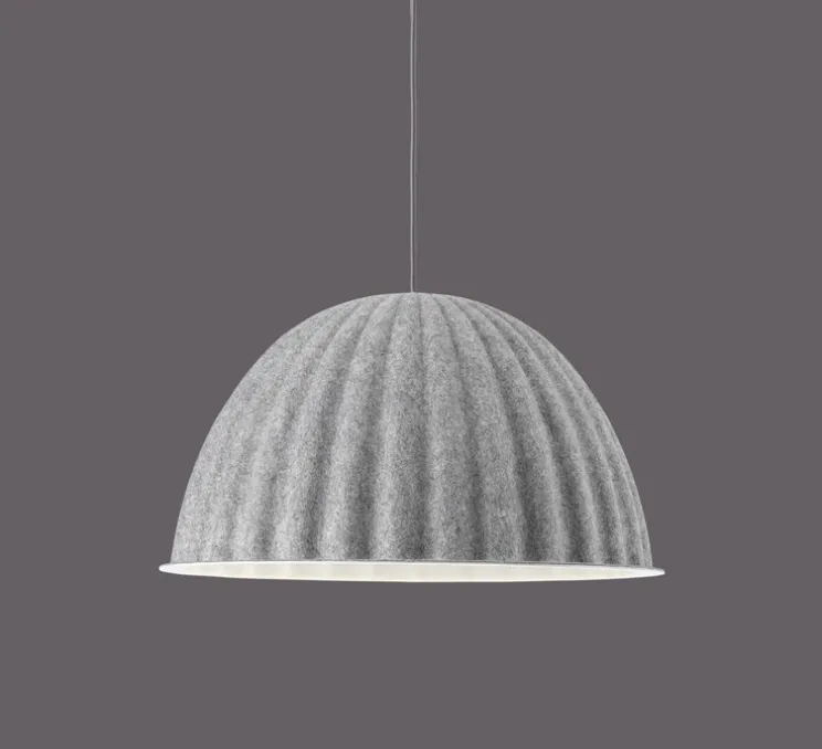 Under The Bell n’est pas une suspension comme les autres, en effet le feutre est un matériau qui a comme particularité d’absorber le son et limiter les réverbérations, ce qui en fait un produit technique / acoutique, fonctionnel et décoratif.