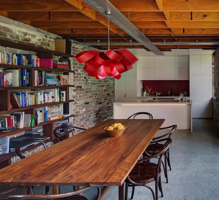 La suspension Agatha rouge de Ø76cm a été imaginée par Luis Eslava Studio et éditée par la maison espagnole LZF.