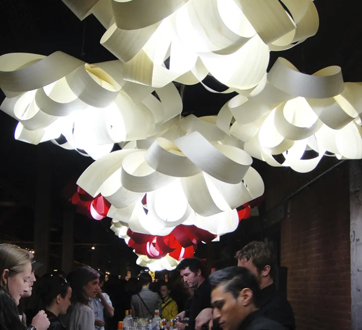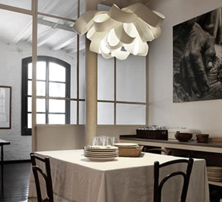La suspension Agatha ivoire/blanche de Ø76cm a été imaginée par Luis Eslava Studio et éditée par la maison espagnole LZF.