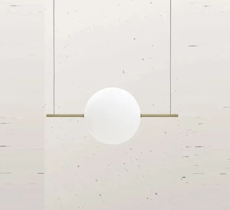 Fabriquée en laiton, cette suspension sphérique allie une esthétique intemporelle à la fonctionnalité moderne. Elle se compose d’une structure longiligne en laiton qui traverse un globe en verre en son centre.