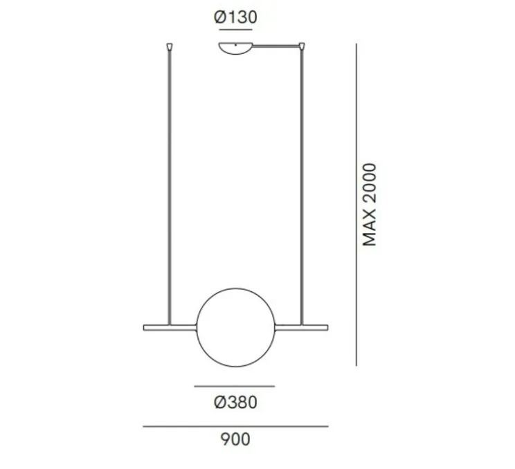 Le luminaire mesure 90cm de longueur avec un globe de 38cm de diamètre.