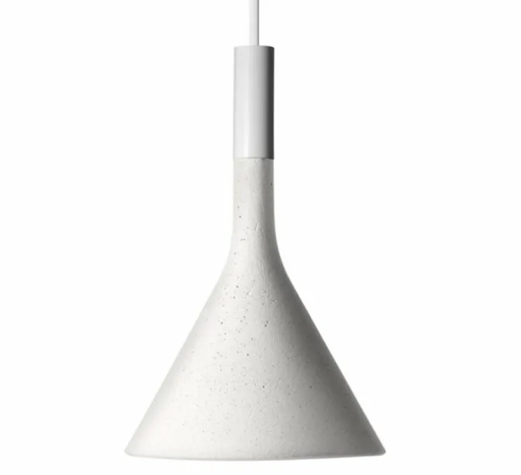 Cette suspension en béton Aplomb mini de finition blanche est signée du duo de designer Lucidi et Pevere est éditée par la maison italienne Foscarini en 2014.