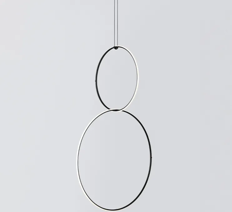 Chaque élément est composé d’un corps en aluminium extrudé, courbé, travaillé en CN et recouvert de peinture poudre noir et d’un diffuseur en silicone optique platinique. Chaque élément peut être connecté à l’alimentation par un système de connexion électrique et mécanique. Deux rosaces sont disponibles : une pouvant accueillir une configuration de puissance inférieure à 70 watts et une pouvant accueillir une configuration de puissance inférieur à 190 watts. L’électronique intégré dans la rosace permet d’utiliser des systèmes de variation : push, 1-10V, potentiomètre, DALI ; et il est également possible lors de l’installation de régler le flux lumineux avec le système push inclus. Le câble est d’une longueur de 2,5 mètres.