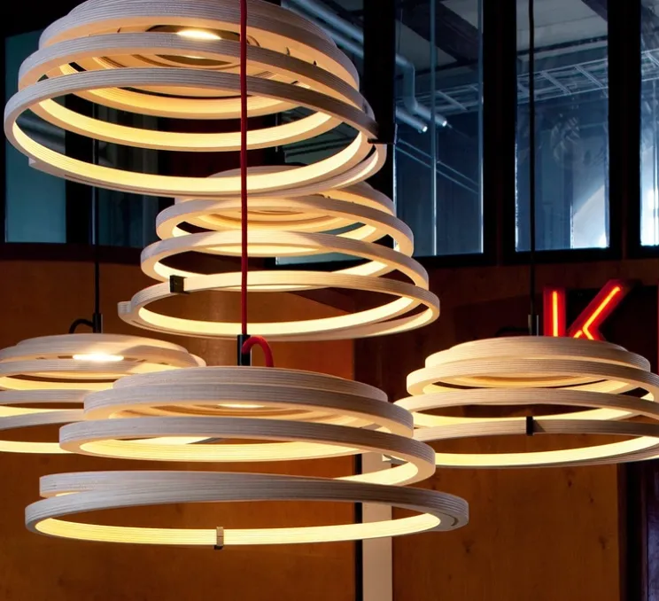 En bouleau, cette suspension combine un design contemporain, avec une silhouette délicate en spirale.