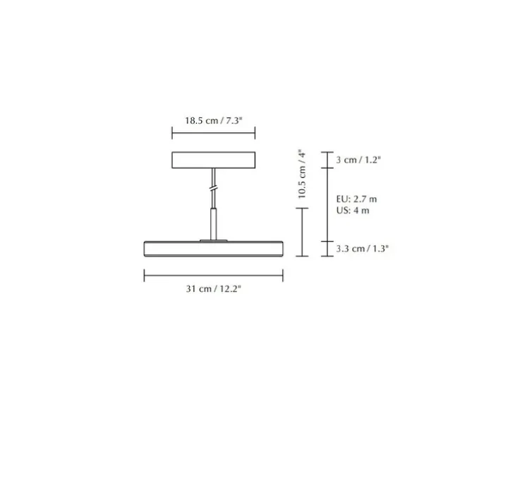 La suspension mesure 31cm de diamètre pour une hauteur de 14,3cm. Ell est égalemant disponible dans différents coloris et en diamètre 43cm.