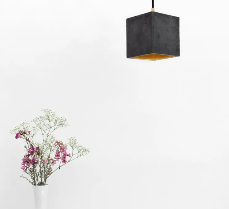 La suspension cubique [B1] est moulée à partir d’un béton gris. Il combine l’or noble et le béton brut dans une lampe design intemporelle et élégante. La dorure de haute qualité de l’intérieur émet une lumière chaude agréable.