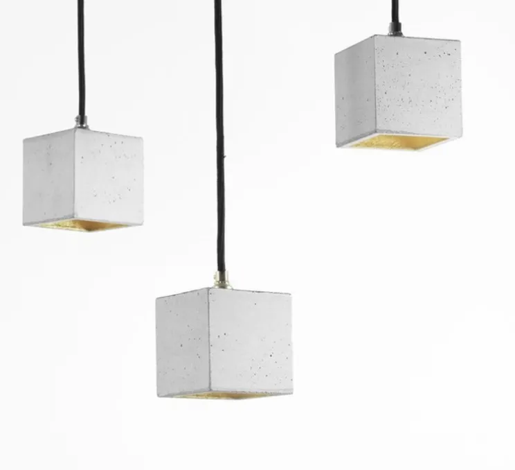 La suspension cubique [B6] est fabriquée à partir d’un béton gris. Il combine l’or noble et le béton brut dans une lampe design intemporelle et élégante. La dorure de haute qualité de l’intérieur émet une lumière chaude agréable.