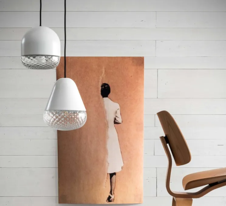 Ballonton Pill est une suspension en forme de cachet stylisé composé de deux éléments encastrés. L’élément du dessus est en métal et l’élément du dessous est en verre soufflé. Balloton Pill est une belle mise en lumière de la technique artisanale du verre soufflé, souligné par le contraste de matière avec le métal. Le « balloton » est le nom d’un motif typique de l’art de la soufflerie de verre, constitué d’une multitude de losanges, chacun reflétant la lumière dans différentes directions, dessinant ainsi une mosaïque lumineuse. Que ce soit individuellement ou en nuage de plusieurs, Balloton Pill sait créer un univers onirique à chaque intérieur ou apporter sa douce élégance à un restaurant.