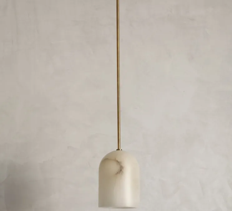 Cette suspension élégante est fabriquée à la main à Majorque. En finition albâtre et laiton, ce luminaire arrondi apporte caractère et charme à votre intérieur.