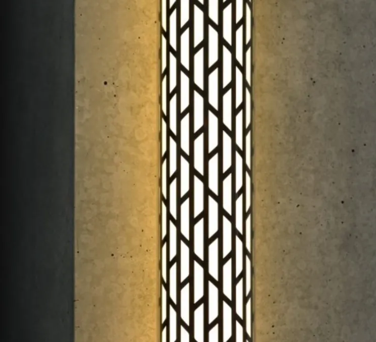 Un film interne blanc diffuse parfaitement la lumière produite par les LED et met en valeur le dessin résolument moderne de sa grille multi perforée.