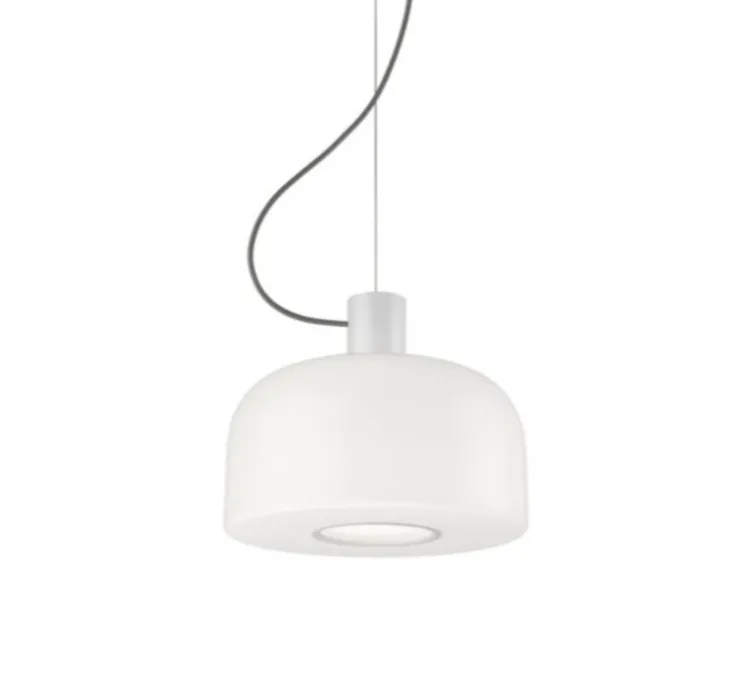 Avec la suspension Bellhop Glass, les designers mêlent élégance et fonctionnalité. Elle est conçue à partir d’un abat-jour en verre soufflé opalin disposant d’une ouverture inférieure entourée d’un anneau en métal. L’abat-jour est surmonté d’une base en aluminium brillant pour harmoniser l’ensemble de la silhouette. Elle diffuse une lumière non éblouissante qui crée une atmosphère chaleureuse tout en projetant un cône de lumière précis et homogène par le bas. Parfait équilibre entre design minimaliste et performance lumineuse, Bellhop Glass illumine chaque espace avec subtilité.