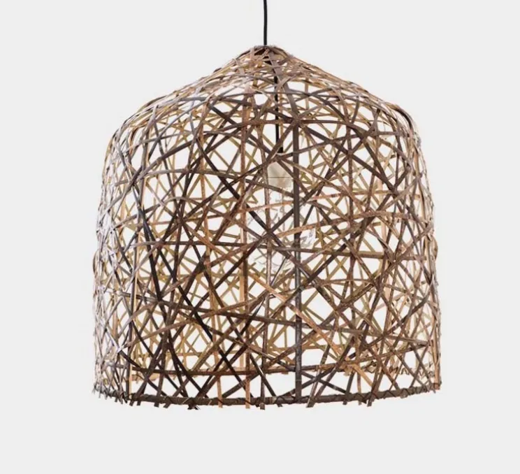 Son abat-jour de coloris naturel fabriqué en bambou, offrant une atmosphère chaleureuse et naturelle à un espace.