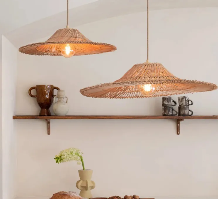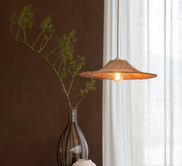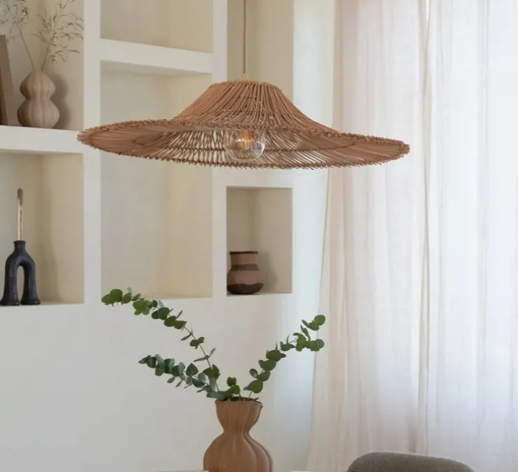Avec son diamètre de 53 cm et sa hauteur de 13 cm, cette suspension arbore une forme circulaire qui se distingue par sa simplicité et son allure légère. Son coloris naturel s’intègre aisément dans divers types de décoration, du style bohème au plus contemporain. L’éclairage diffus à 360° crée une ambiance douce et accueillante, idéale pour les salons, chambres ou espaces de détente.